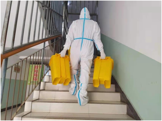 我需要兩個垃圾袋,我需要口罩,我需要……3000余名員工需求保障,他們“有求必應,有需必達”,成了園區(qū)公舍里的“宅急送”。他們每天爬樓上下,為每個房間送上垃圾袋,及時清理生活垃圾,每天微信步數(shù)都在20000以上。