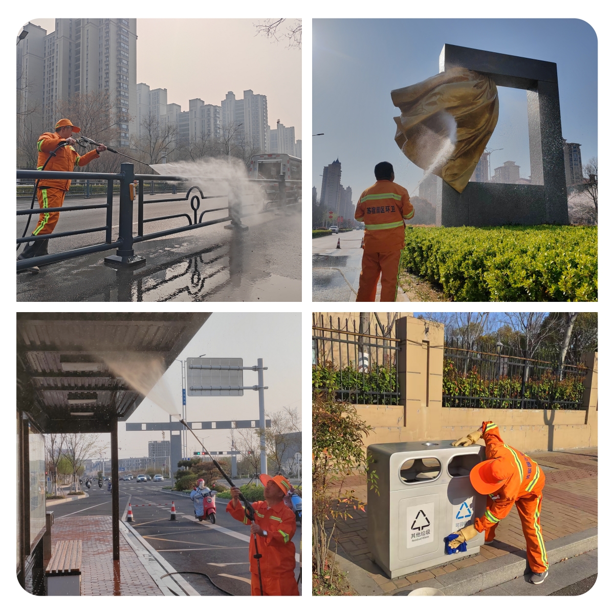 “立面”清洗,“洗”出“高顏值”。采用“擦、洗”相結(jié)合,對公交站臺、交通護欄、果殼箱、雕塑小品等城市家具進行了深度清潔,在日常擦拭的基礎(chǔ)上,集中開展了一次設(shè)施“立面”大清洗,洗去冬日積塵,重現(xiàn)靚麗本色。