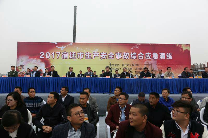 10月17日上午10時(shí),2017宿遷市生產(chǎn)安全事故綜合應(yīng)急救援演練活動(dòng)在宿遷生態(tài)化工科技產(chǎn)業(yè)園隆重舉行。此次活動(dòng)由宿遷市人民政府主辦,市安監(jiān)局、市消防支隊(duì)、市應(yīng)急辦、宿豫區(qū)人民政府承辦。省安監(jiān)局副局長(zhǎng)趙啟鳳,省政府總值班室副主任薛廣建,市委副書(shū)記、市長(zhǎng)王天琦,現(xiàn)場(chǎng)觀摩演練。市直有關(guān)單位,以及各縣、區(qū),市各開(kāi)發(fā)區(qū)、新區(qū)、園區(qū)相關(guān)負(fù)責(zé)人現(xiàn)場(chǎng)觀摩演練。