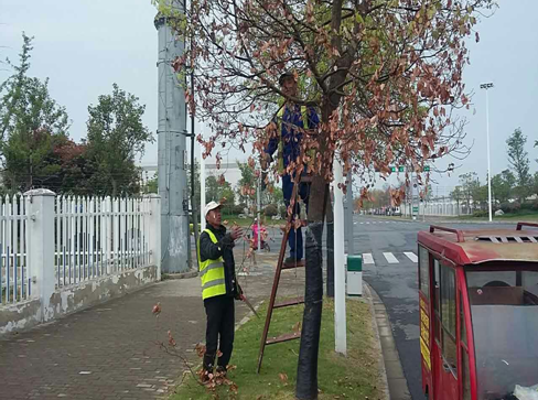 為提高園區(qū)2015年受凍香樟成活率,近期,公司組織養(yǎng)護單位對園區(qū)香樟進行一系列的復壯措施。