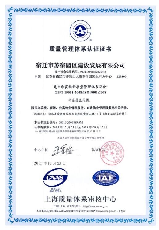 2016年1月份,公司正式獲得由上海質(zhì)量認(rèn)證中心頒發(fā)的ISO9001質(zhì)量管理體系認(rèn)證證書。