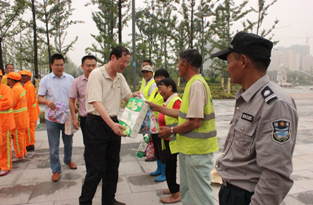 7月23日上午,園區(qū)黨工委委員、規(guī)劃建設(shè)局局長(zhǎng)周原帶隊(duì)慰問(wèn)了奮戰(zhàn)在一線(xiàn)的城市維護(hù)作業(yè)人員,給他們送上清涼、送上關(guān)愛(ài)。